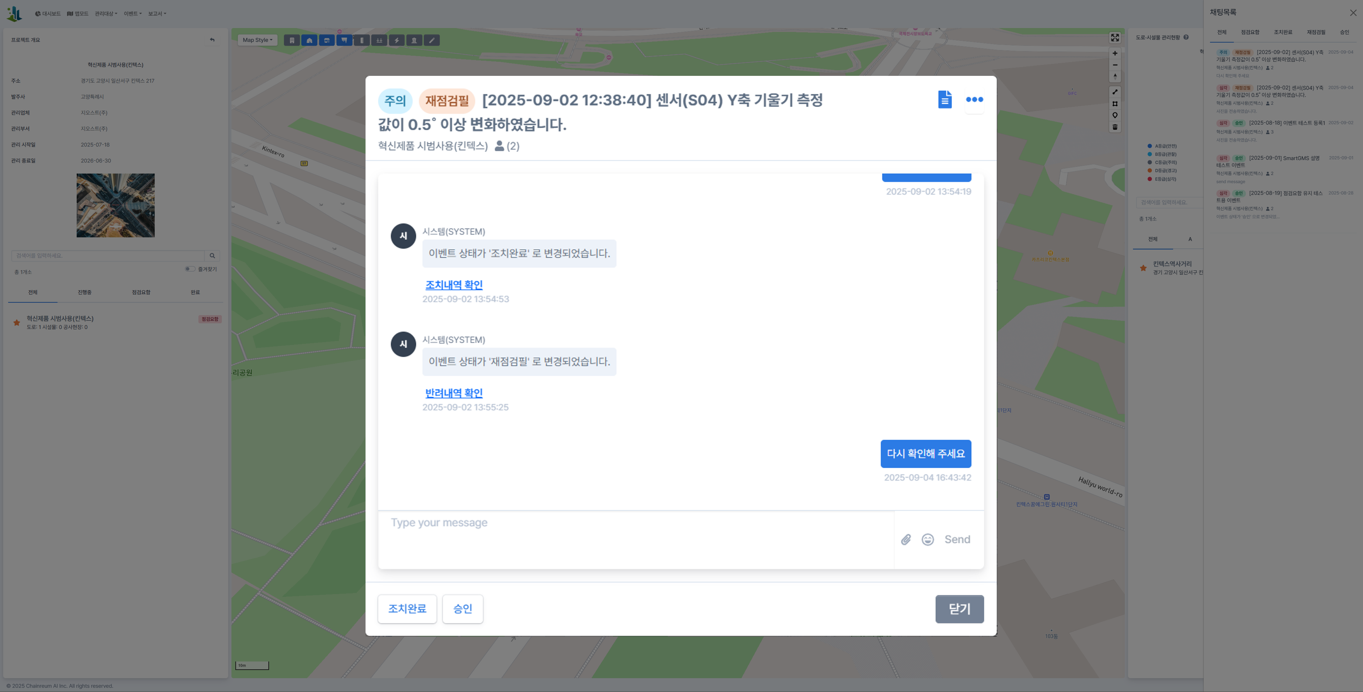 실시간 채팅과 현장 담당자의 점검 · 조치 여부 실시간 확인